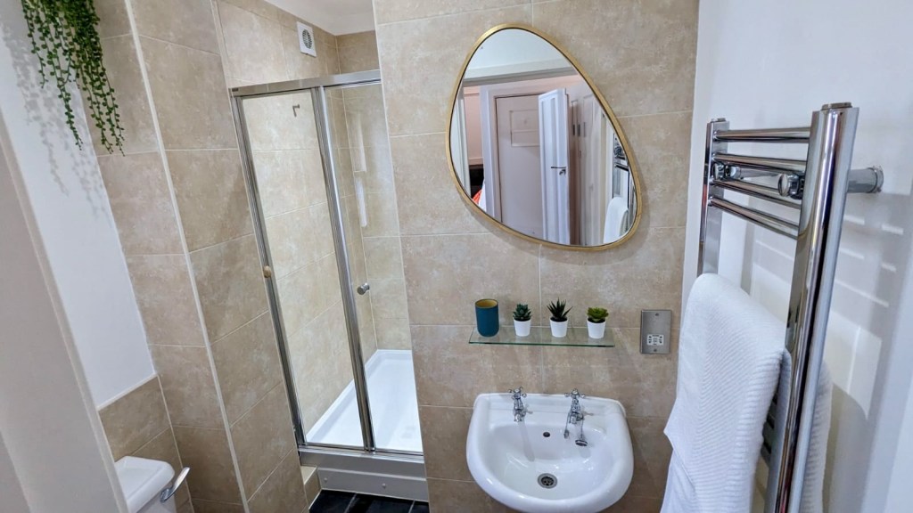 - Two bathrooms: A ground floor shower and toilet and an upstairs bathroom with bath and separate shower. Both with heated towel rails.