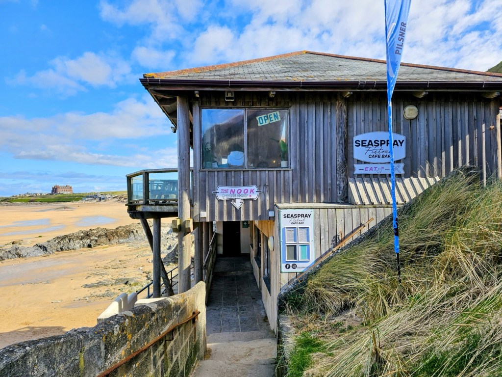 Right on Esplanade Road you’ll find the Sea Spray Café, perched above the cliffs with stunning views over South Fistral Beach. It’s open Wednesday to Sunday, offering great coffee, brunch options, and outdoor seating that’s perfect for people-watching or catching a few waves roll in. Here’s the location on Google Maps.